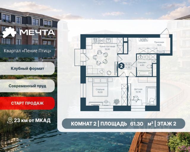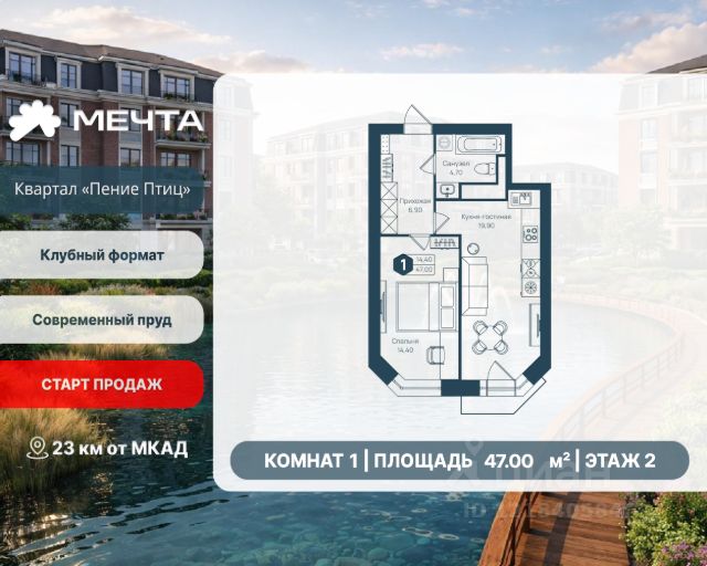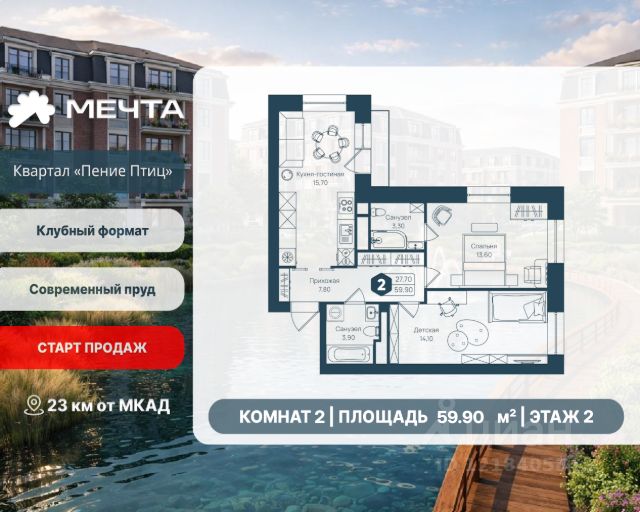 Рассрочка 0% от застройщика! Продается двухкомнатная квартира в квартале "Дружба" жилого комплекса "Мечта". Общая площадь квартиры: 66.39 кв. м, этаж 5 из 5. Срок сдачи: 2 квартал 2026 г. Отделка: Получистовая ОСОБЕННОСТИ: - Просторная кухня-гостиная - Гардероб - 2 спальни - 2 санузла - Широкоформатные окна - Высота потолка: 2.7 метра Квартал "Дружба" состоит из пяти пятиэтажных домов с несколькими подъездами. Каждый дом оборудован широкими окнами, которые обеспечивают максимальный доступ естественного света и открывают прекрасный вид на окружающую природу. Квартал отличается большими застеклёнными лоджиями, которые позволяют наслаждаться свежим воздухом и красивым видом, не покидая своего жилища. Жилой комплекс "Мечта" расположен в 23 км от МКАД по Дмитровскому или Ленинградскому шоссе. ТРАНСПОРТНАЯ ДОСТУПНОСТЬ: - 15-20 минут на общественном транспорте до МЦД-1 "Лобня" - 30-35 минут на общественном транспорте до метро "Физтех" - 45-50 минут до станций метро "Савеловская" или "Белорусская" - 30 минут на автомобиле до Москвы Инфраструктура включает в себя муниципальную школу и детские сады, кабинет врача общей практики, множество кафе и ресторанов, а также различные спортивные и детские площадки. В пешей доступности от жилого комплекса расположены лес и три реликтовых озера — Долгое, Круглое и Нерское, а также реки Альба, Уча и Волгуша. Территория жилого комплекса закрыта для посторонних, находится под охраной и патрулируется. На въезде расположен КПП. Камеры видеонаблюдения работают круглосуточно на всей территории. Вы и ваши дети будете чувствовать себя в безопасности.
