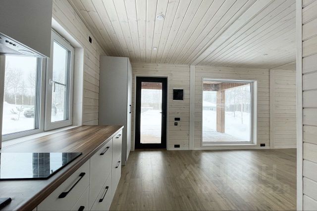 Предлагается на продажу полностью готовый к проживанию жилой дом в коттеджном поселке Трилогия в 36 км от МКАД. Дом абсолютно новый в нем никто не жил. ЕГРН на дом и на участок. КП Трилогия активно застраивается и развивается, успейте и вы приобрести здесь дом своей мечты в этом тихом, спокойном месте! Въезд через шлагбаум с охраной! О доме: каркасный дом площадью 86,5 кв.м. 2023 года постройки, состоит из кухни, большой гостиной, двух спален и санузла. В комнатах установлены панорамные окна в пол и дополнительные окна для проветривания, на полу ламинат. Внутренняя отделка дома выполнена окрашенной на заводе широкой евровагонкой. Санузел полностью оборудован, бойлер на 80 литров, на полу керамогранит. Установлен кухонный гарнитур, который по желанию покупателя может быть укомплектован им по своему вкусу и потребностям. Кондиционер, центральное водоснабжение, септик Евролос ПРО с гарантией от производителя, мощность 15 Кв.т. Главный вход в дом с крытой широкой терассой из лиственницы, продолжающейся за кухней, что позволит проводить время на свежем воздухе практически в любую погоду. О бане: каркасная баня, полностью готовая к использованию. Парилка и комната отдыха. Также имеется гараж. Участок огорожен, имеются автоматические откатные ворота. Есть возможность выкупить соседний участок по хорошей цене и увеличить общую площадь. Прекрасно развита инфраструктуры КП: парк ферма Шихово, школа, магазины, остановка общественного транспорта до станции Лобня. Удобные автомобильные выезды с возможностью платного и бесплатного проезда до МКАД. Документы готовы к сделке, один взрослый собственник. Оперативный показ по предварительной договоренности. Дом находится в КП.