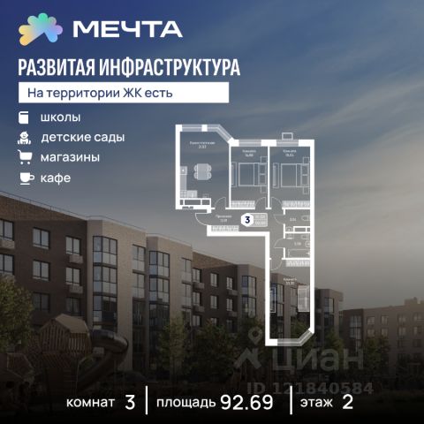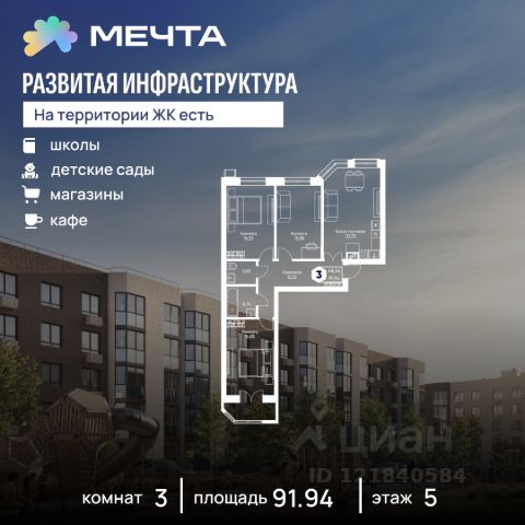 • ✅ Объект наибольшей площади: 91,9 м²
