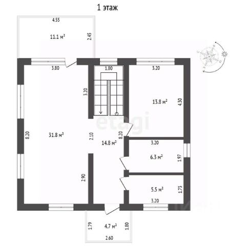 Веранда 12м2., Гостиная 28 м2., Холл 5,5м2., Кухня 9 м2., Котельная 5м2., С/У 4,1 м2., Ванна 6,1 м2.,Постирочная 6,1 м2, Спальня 1 14,5 м2., Спальня 2 15,5 м2., Кабинет 12,5 м2.