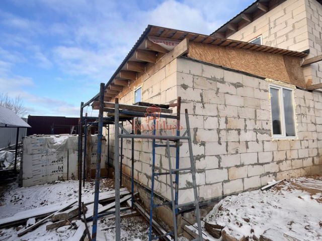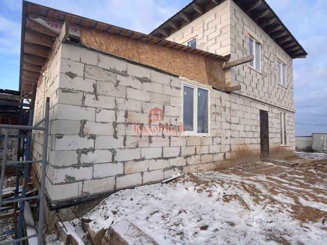Материал стен газобетонные блоки Бонолит d500, отделка фасада декоративная штукатурка. Фундамент свайный ростверк + монолитная жб плита + монолитные входные ступени, межэтажные перекрытия и лестница монолитные жб, крыша - металлочерепица, , утеплитель кровли базальт, софиты, водосточная система, снегозадержатели, качественные окна пвх 3 стекла, металлическая входная дверь.