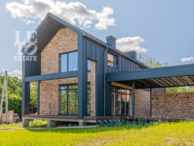 Технология строительства: ленточный фундамент с железобетонными перекрытиями, стены из кирпича (Porotherm), утеплителя (Rockwool), сайдинга 2 видов. Вальмовая крыша с мягкой черепицей (Tegola). Цоколь, крыльцо и лестница в доме отлиты в бетоне. Окна - секционные, с двухкамерными стеклопакетами.