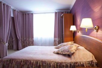 В спальной комнате: Двуспальная кровать (160*200),прикроватные тумбочки,настольное зеркало, светильники (бра), стол, телевизор плазменный, вешалка для одежды напольная, шкаф, сейф, халаты, тапочки, санузел (ванная, раковина, унитаз, биде, фен, туалетные принадлежности (мыло, шампунь, молочко для тела, зубная щетка, паста), комплект полотенец.
