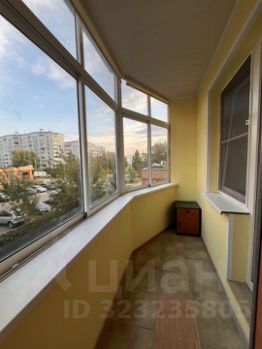 Застекленный балкон, с конструкцией для сушки белья.