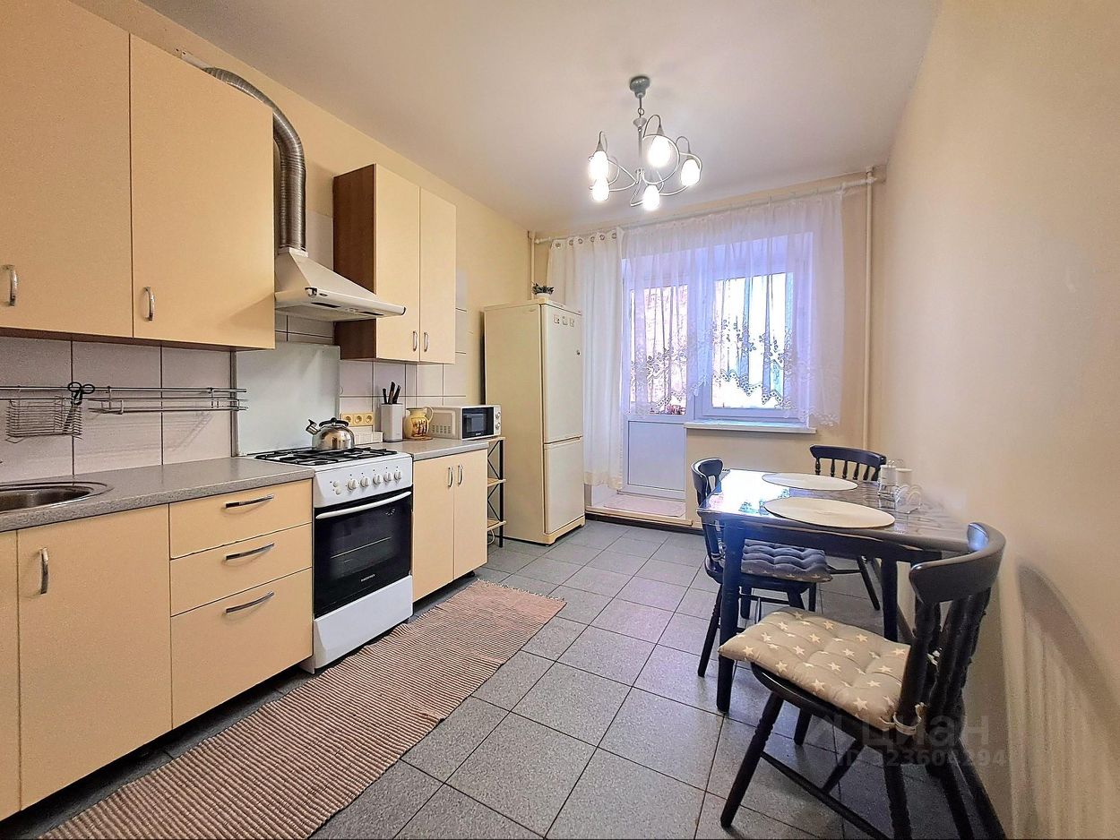 Кухня 12 кв.м. с выходом на застекленную лоджию. Оборудована всем необходимым, включая холодильник. микроволновку. Плита газовая.
