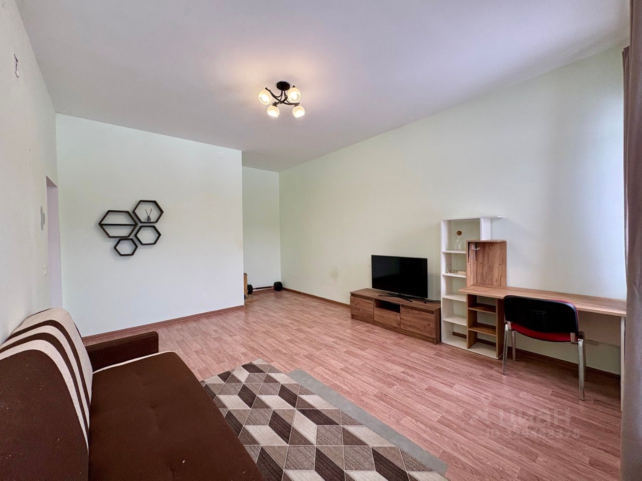 — Комната-гостиная просторная и светлая с двумя окнами и выходом на балкон.