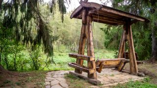 УЧАСТОК: 12 Га. Благоустроенная набережная вдоль реки Дубна протяженностью более 500м, вдоль которой располагается огромное количество деревянных строений ручной работы (лавочки, качели, беседки), а также уникальная деревянная летняя веранда, возвышающаяся над рекой Дубна у основания векового дерева.
