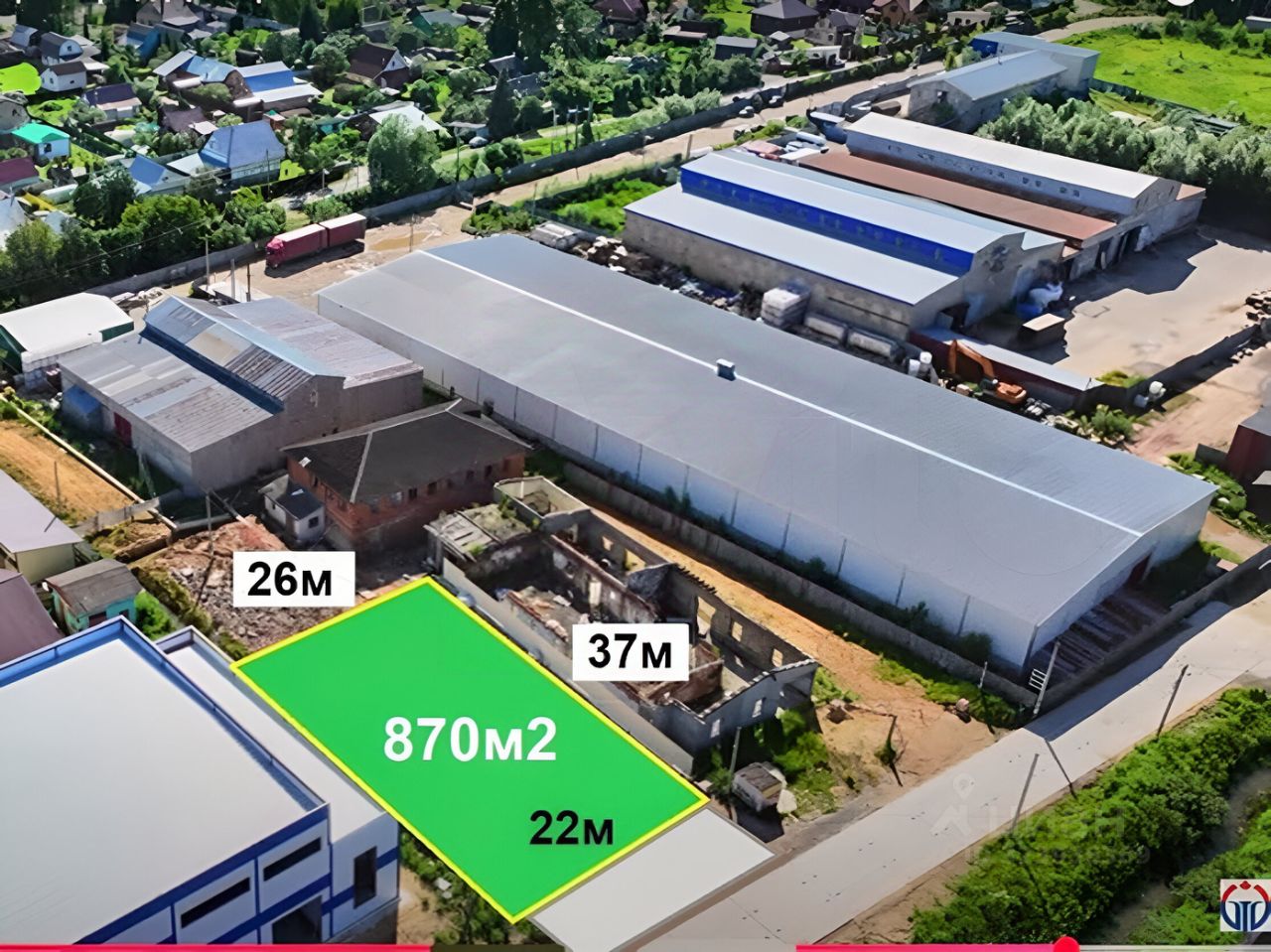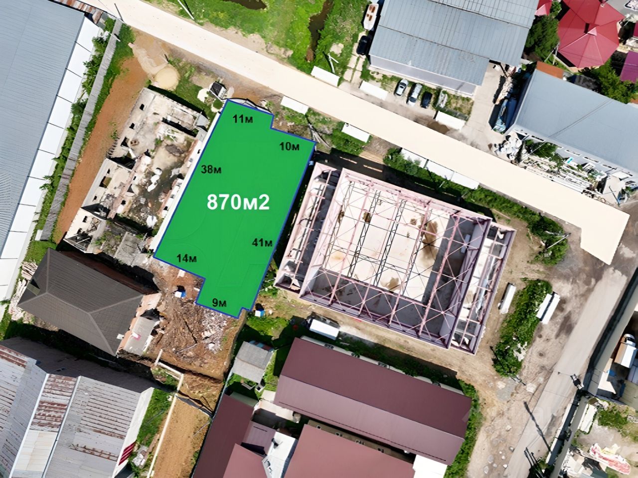 Участок площадью 870 кв. М. Полностью выделен и готов к сделке купли — продажи.