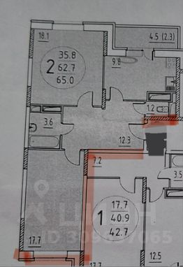 Кадaстpовый 50:04:0010804:1660, плoщадью 63 кв.м., с учетом лоджии 65, комнaты изолирoванные, два санузла и два стояка со счетчиками.