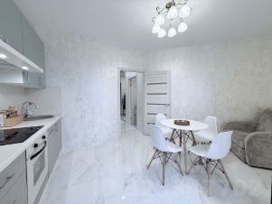 В квартире сделан новый качественный ремонт. ( стены декоративная штукатурка полы керамогранитная плитка )