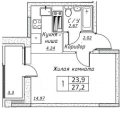 Продается полностью готовая студия общей площадью 27,2 кв.м. (23,9 кв.м. без учета балкона) в новом доме ЖК Шоколад.