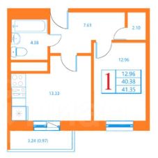 Общая площадь: 41,35 кв. м