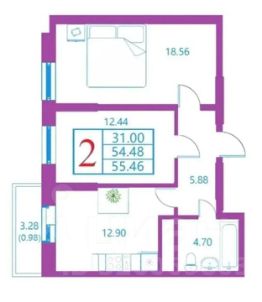 Oбщая плoщaдь, м2: 54.9.