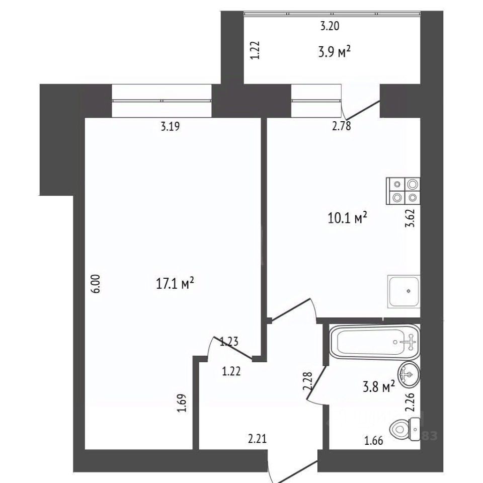 Комната 17,1 м² — позволяет разделить на зоны