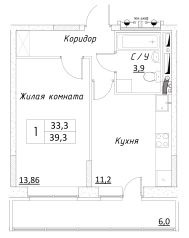 Продается полностью готовая 1-комн. квартира общей площадью 39,3 кв.м. (33,3 кв.м. без учета балкона) в новом доме ЖК Шоколад.