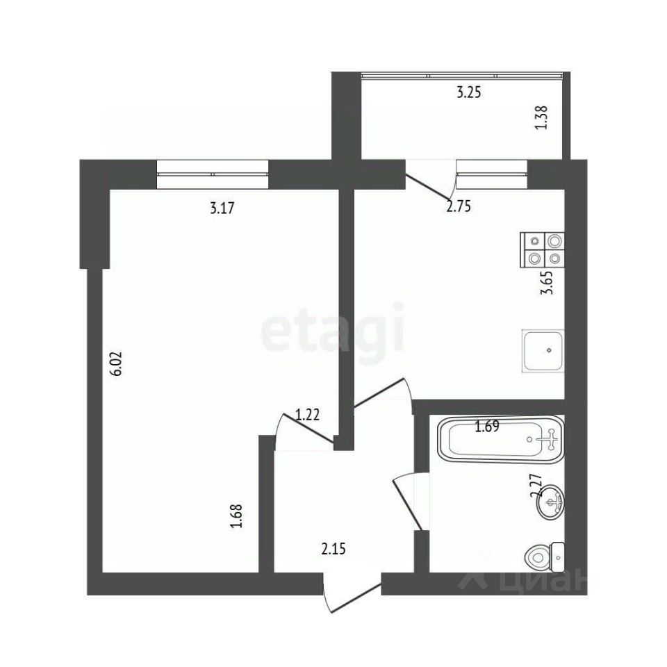 Кухня просторная 10 кв.м, имеет выход на лоджию. Комната 17,1 кв.м. имеет удобную нишу для размещения кровати или шкафа-купе.