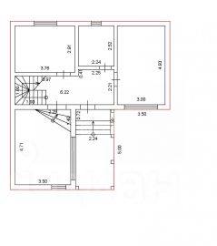 Второй этаж: комнаты 22,12 м2, свободная планировка.