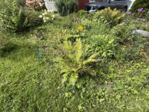 На участке посажены яблони, кустовые ягоды, сливы.